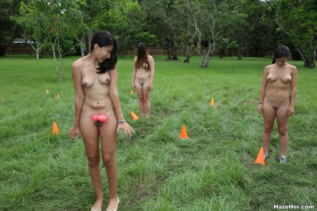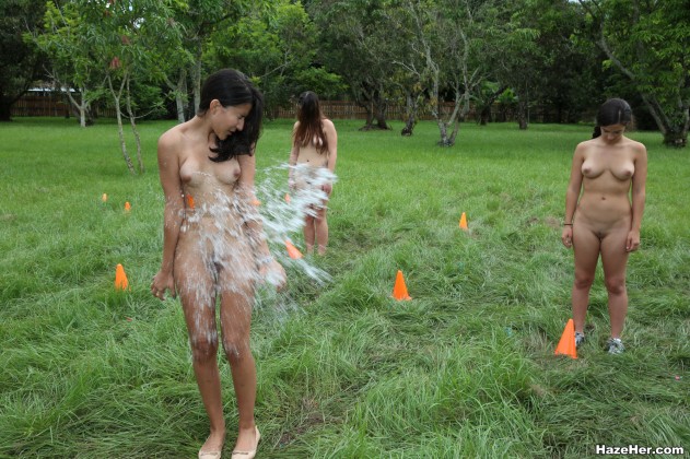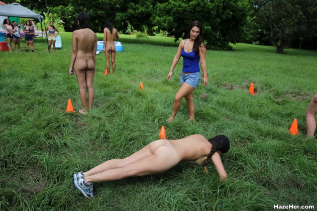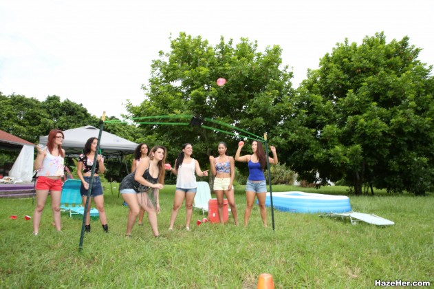 Getting into a sorority is no joke. These girls were used as human targets on the water balloon shooting range. When they had gotten themselves dried up a new task awaited them; they had to lick pussy and fuck with a dildo! Some of these girls were bisexual and didn't have a problem with it while other stayed in the background :) Alina joined in on the action of course :)
